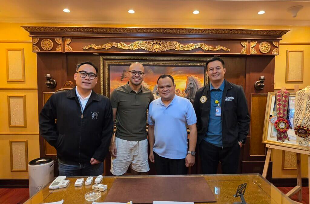 Gearing Up for a Big Event – Shown in this photo from left to right are: Mr. James Emmanuel Tabigue, Head of the Marketing Department; Mr. Luke Mejares; UB President Dr. Victoriano B. Tirol III; and Dr. Lemuel O. Belarmino, Dean of the Student / Personnel Services.